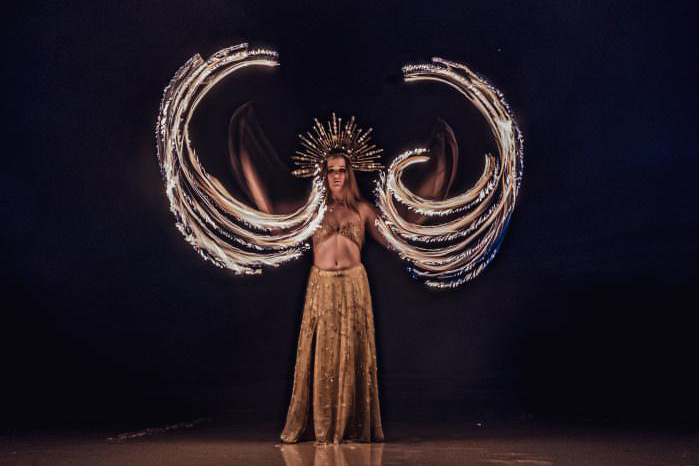 With many years of professional experience, Chaosmic offers a versatile range of performances which can be tailored to suit your events unique themes and desires. From dynamic multi-prop fire shows, breathtaking fire aerial acts, body painting transformations, to mesmerising silk, LED and circus flow, CHAOSMIC blurs the lines between art, and spectacle. As the sole creator and performer of her unique hoop and veil fan hybrid, she delivers something truly one-of-a-kind. Additionally Chaosmic offers group and 1:1 lessons in the art of Fire and Flow which can be brought to your events so your guests can experience the magic of circus. Based in Byron Bay, Chaosmic is a commanding presence that can transform spaces, making her an excellent choice for your next event.