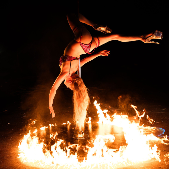 Elevate your event-literally-with breathtaking aerial performances on hoop, pole, or lollipop. Available with fire integration for that extra wow factor.